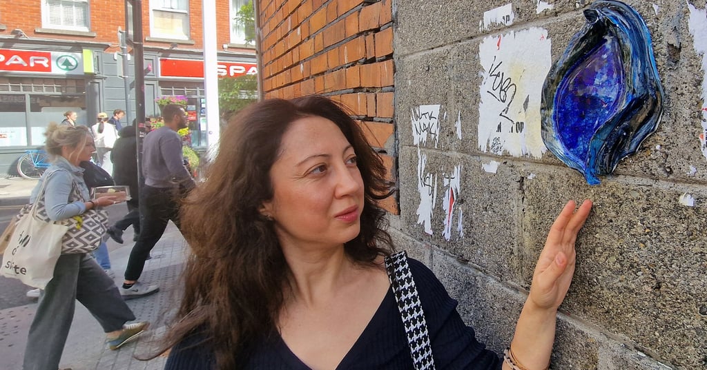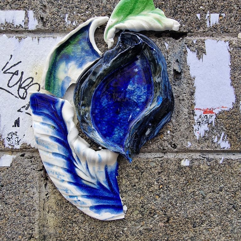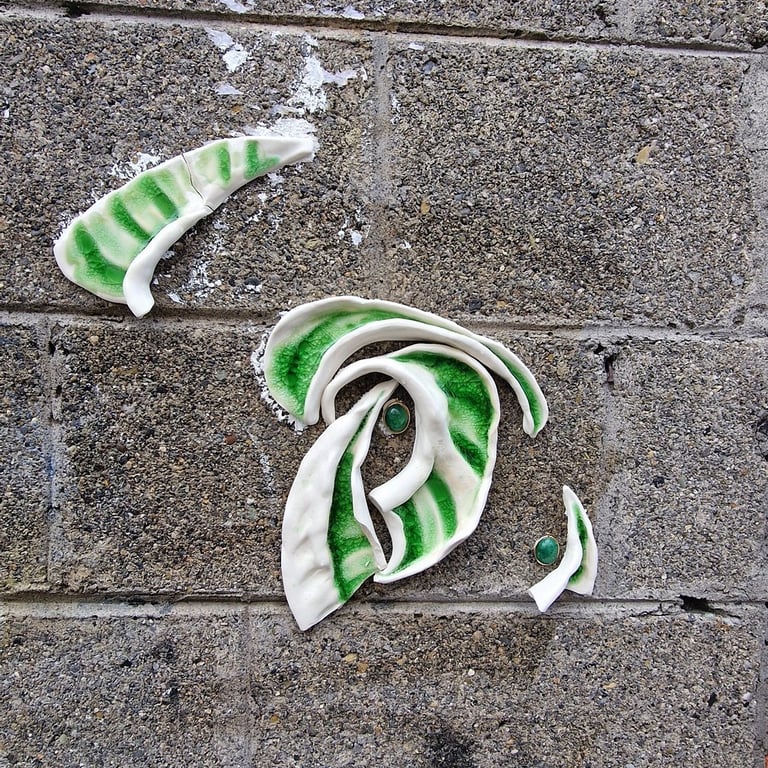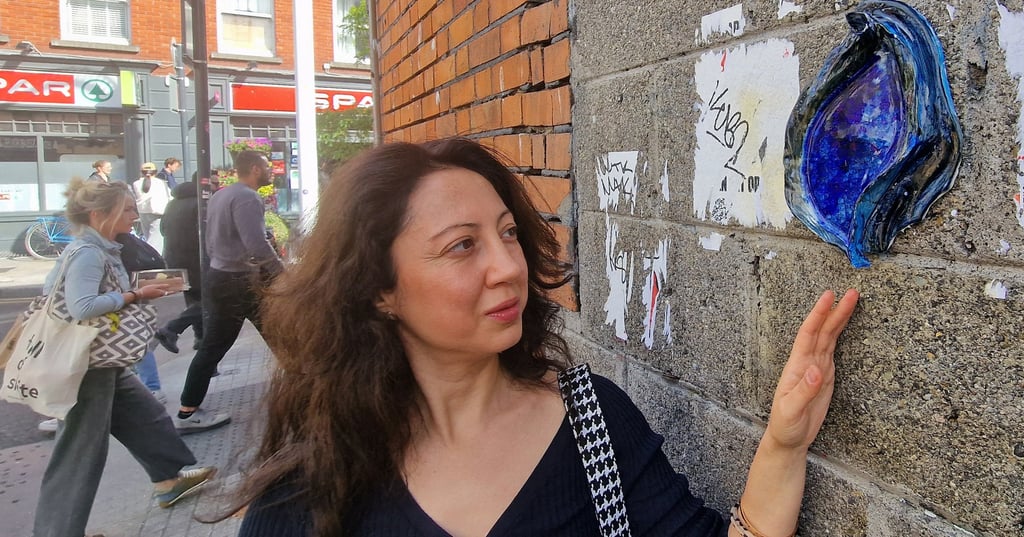 This is my first street installation in Dublin, part of my Open Gallery Project. I work with porcelain and recycled glass, shaping them into flowing organic forms.