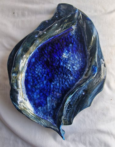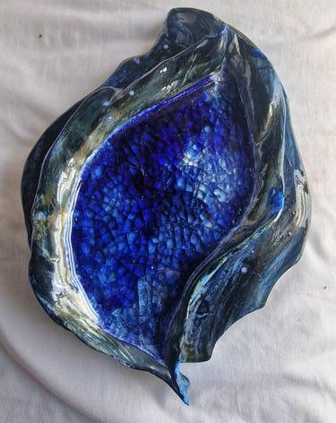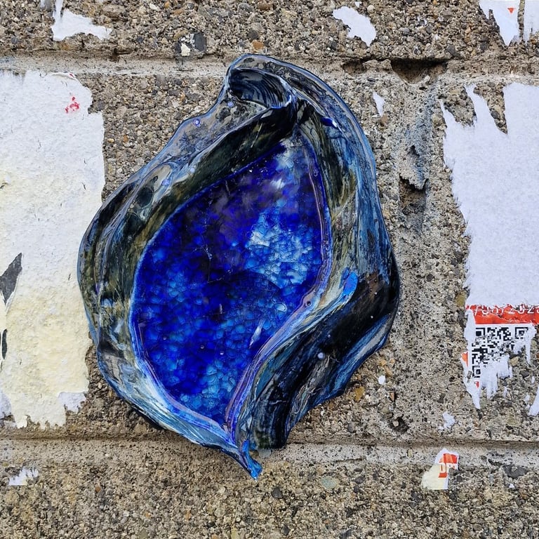 Deep Blue Nature is inspired by the flow of nature and the depth of water. The work combines Recycled blue glass with Cobalt Oxide Transparency, creating a surface that recalls the shimmering effect of water crystals.